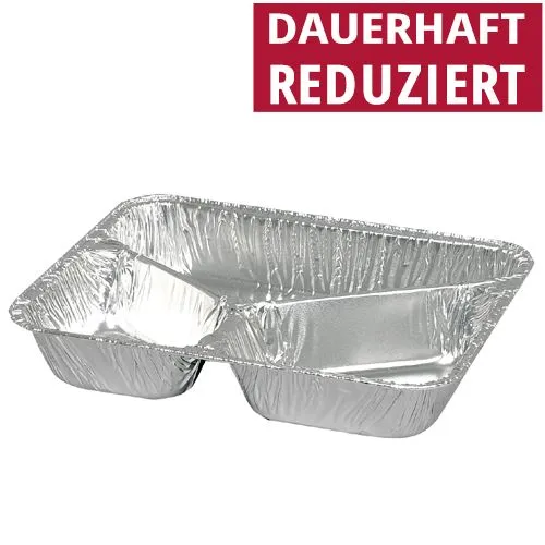 Alu-Menüschale, 3-geteilt, 22,7x17,8x3,9 cm, Aluschale, 1000 Stück