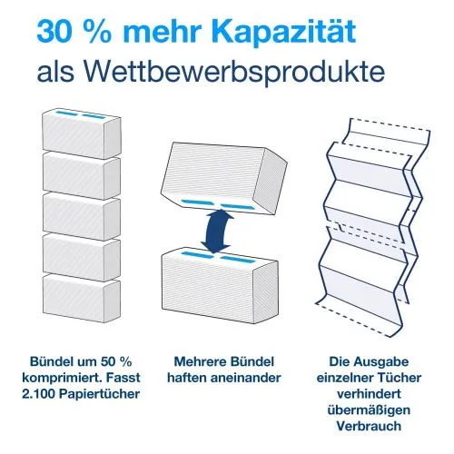 Tork PeakServe: die neueste Innovation für hochfrequentierte Waschräume, in denen das Reinigungspersonal mehr Reinigungsaufwand hat und für einen reibungslosen Besucherdurchlauf sorgen muss. Kompatibel mit dem Tork PeakServe® System für Endlos-Handtücher. Das System verfügt über eine sehr hohe Kapazität von 1.230 Handtüchern, die schnell und ohne Unterbrechung ausgegeben werden und so einen schnellen und reibungslosen Besucherdurchlauf ermöglichen. Die komprimierten Nachfüllungen sind schnell einzulegen, können jederzeit aufgefüllt werden und sind einfach und bequem zu transportieren und zu lagern – damit sich Ihr Personal ganz auf das Reinigen konzentrieren kann.