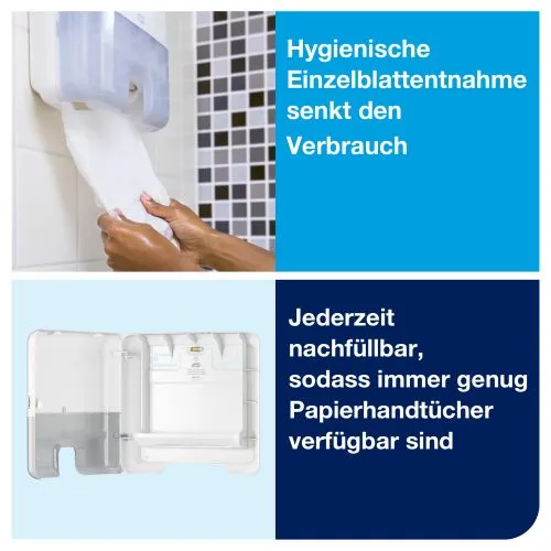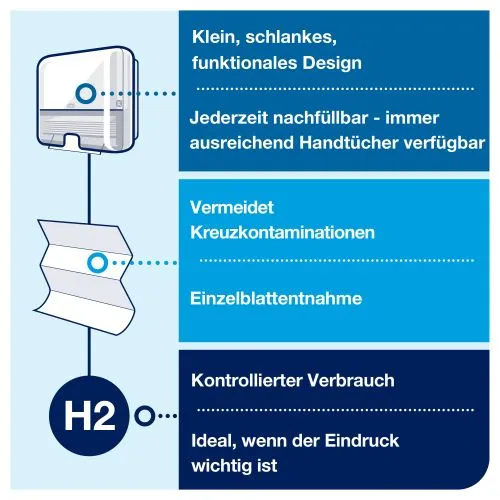 * Geringerer Verbrauch und mehr Hygienedurch Einzeltuchentnahme