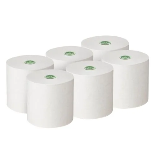 * Die Handtücher auf Rollen sind plastikfrei, zu 100 % recycelbar und können dank des Zellstoffkerns vollständig in den Recyclingkreislauf für Papier eingeführt werden