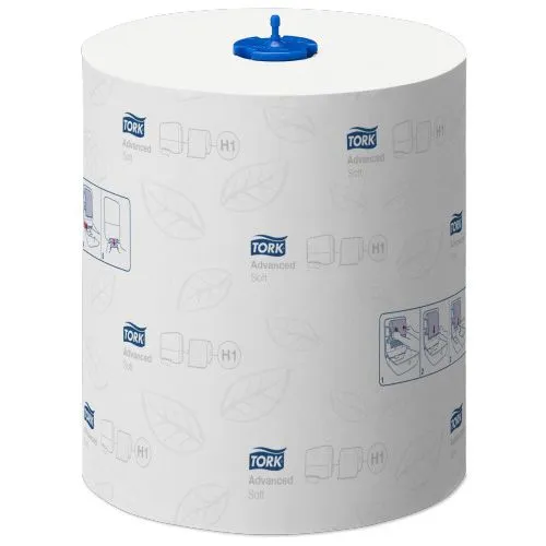 Verwöhnen Sie Ihre Gäste mit den Tork Matic Advanced H1 Rollenhandtuch (150 m). Sie trocknen die Hände gründlich ab und zeichnen sich durch eine hübsche graue Prägung in Blattform aus. Die Rollen eignen sich für den Tork Matic Spender für Rollenhandtücher, der für Waschräume mit hoher Besucherfrequenz entworfen wurde und besonders wartungsarm ist. Er erspart Ihnen Zeit und regelt den Verbrauch, indem er immer nur ein Blatt ausgibt.