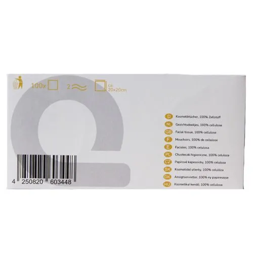 * 2-lagige Allzweck- und Kosmetiktücher aus hochwertigem Zellstoff-Tissue.