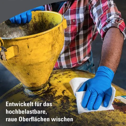Ideal: für anspruchsvolle Reinigungsarbeiten in der Industrie, zum Reinigen von Maschinen und Maschinenteilen, zum Reinigen rauer Oberflächen, ohne zu reißen, zum Entfernen von Fett, Öl, Lösungsmitteln und starken Verunreinigungen, zur Oberflächenbearbeitung.