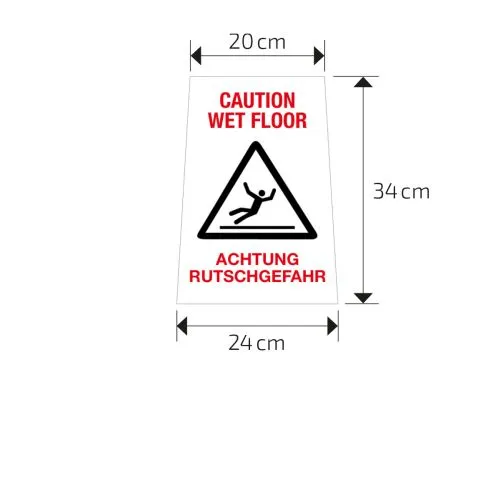 Klappbarer Aufsteller mit beidseitiger Beschriftung, zur Minimierung des Unfallrisikos.